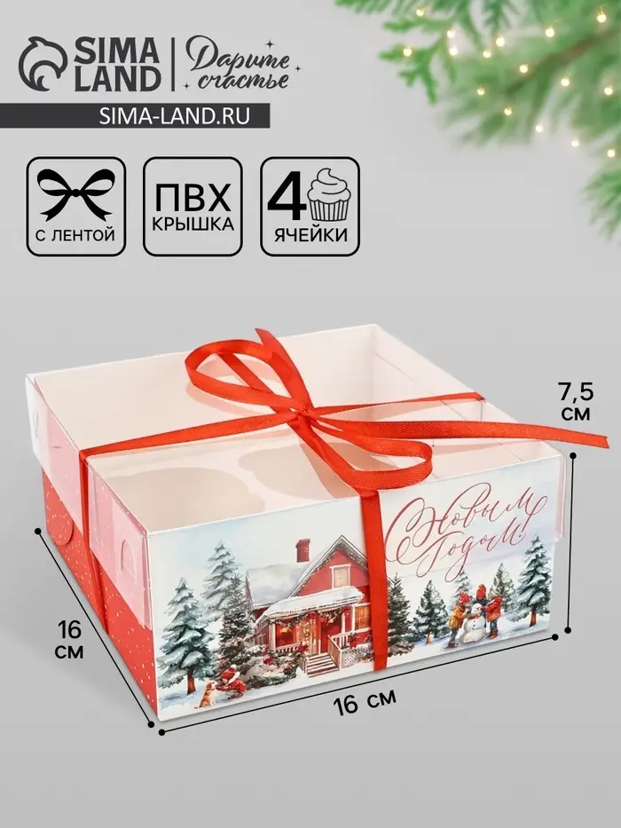Коробка для капкейка «Счастливого Нового года!», 16×16×7.5 см