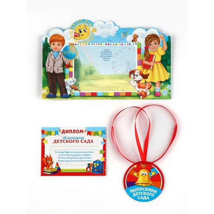 Диплом-фоторамка "Выпускник детского сада", колокольчик, набор 5 шт, 24 х 15 см
