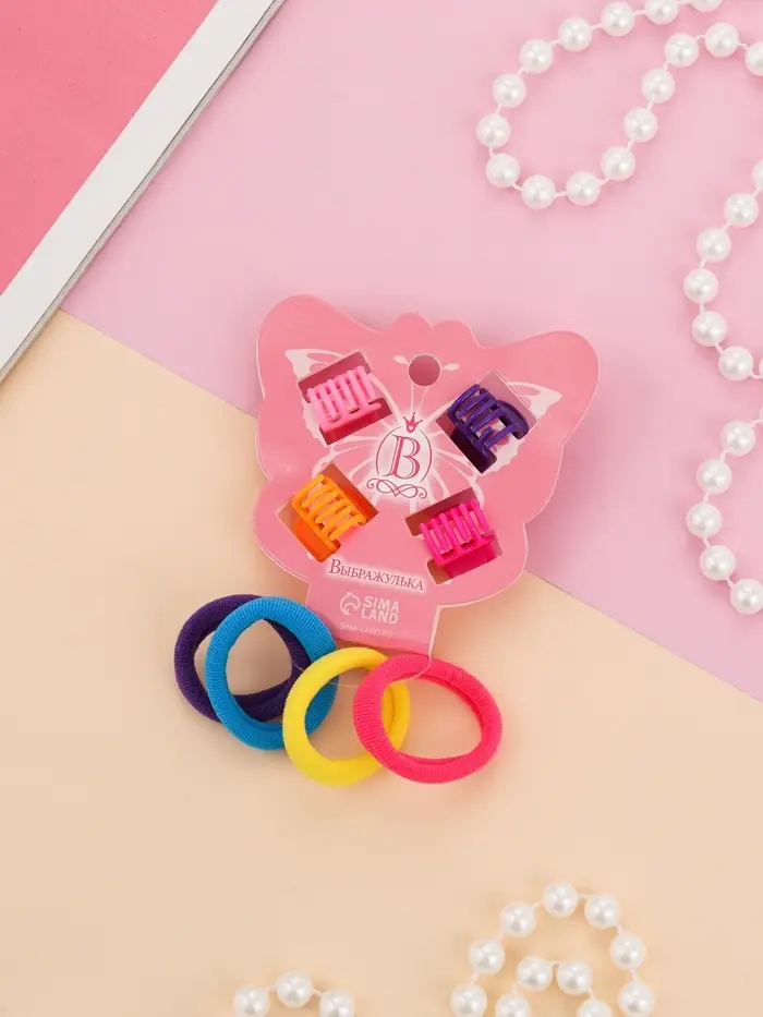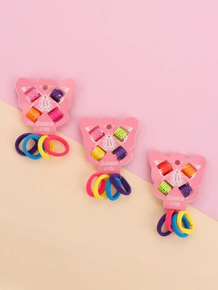 Набор для волос Выбражулька «Бабочка», 4 крабика, 4 резинки, яркий глянец