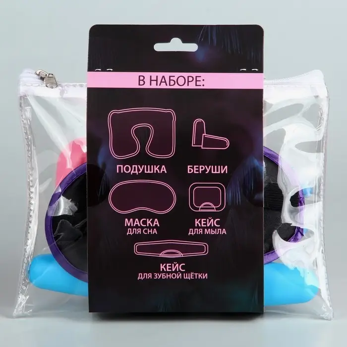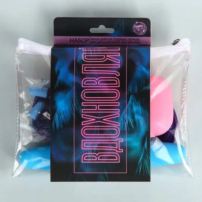 Подарочный набор дорожный «Вдохновляй»: подушка, маска, беруши, кейс для мыла и щётки