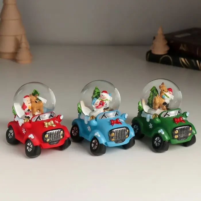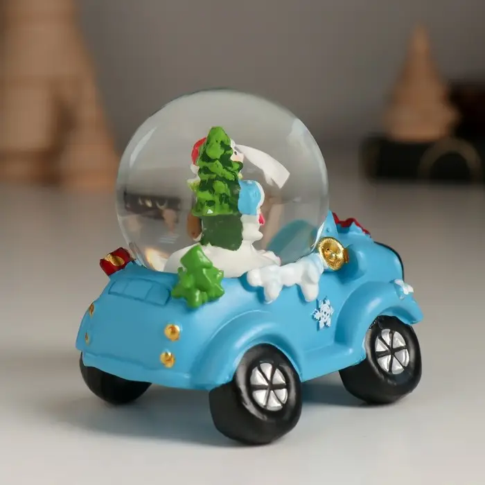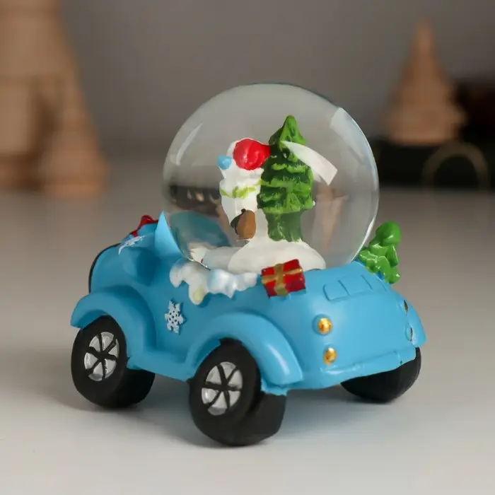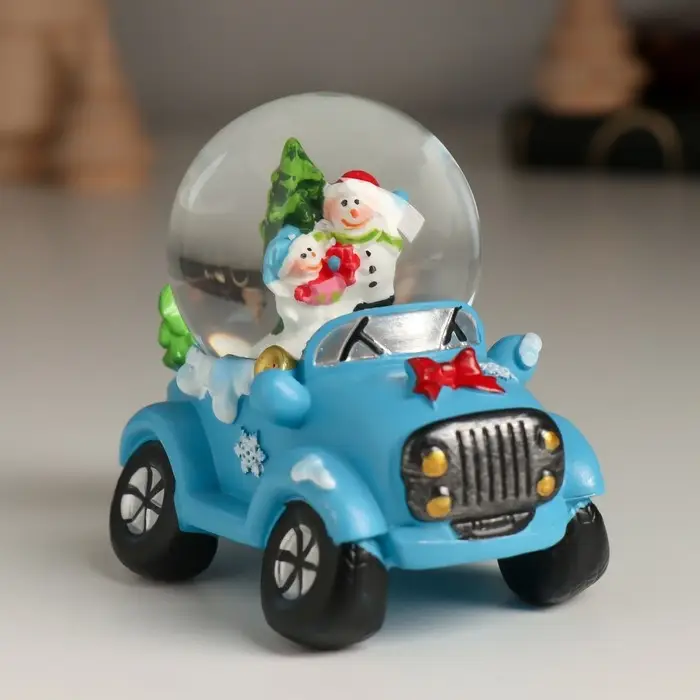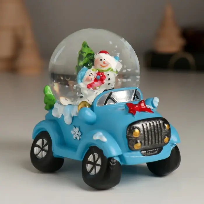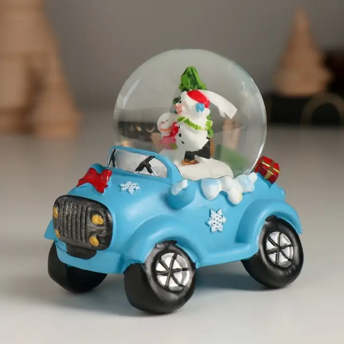 Сувенир полистоун водяной шар "Дед Мороз/Снеговик на джипе" МИКС 7,2х5,8х7 см