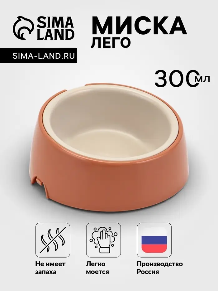 Лего-миска для животных с наклоном «Фокси» 300 мл, цвет кирпичный