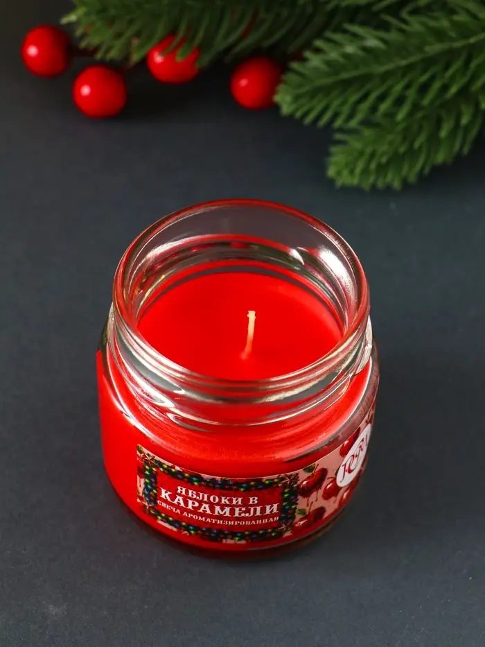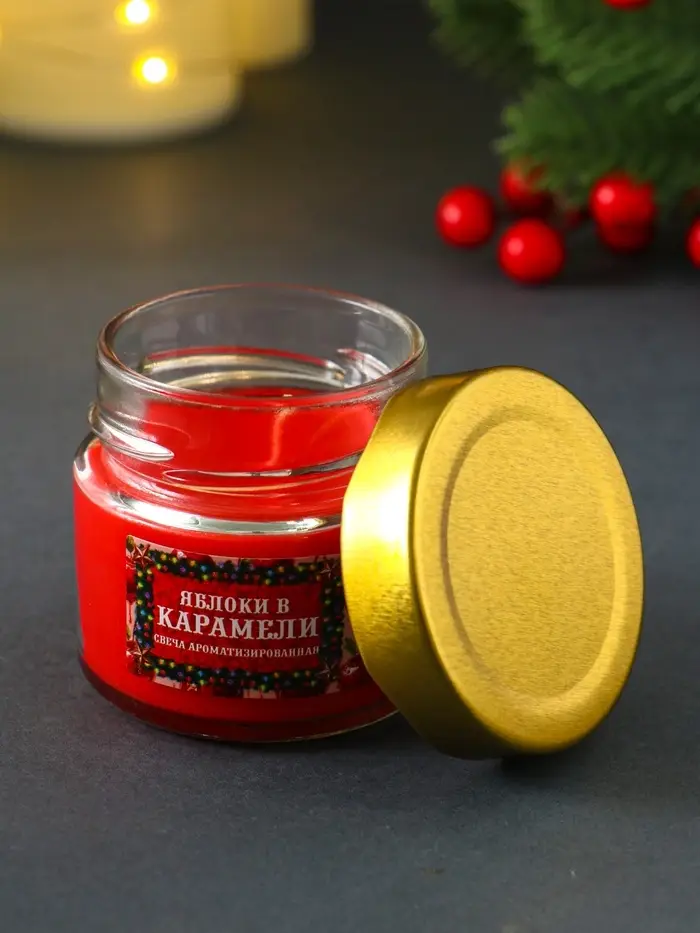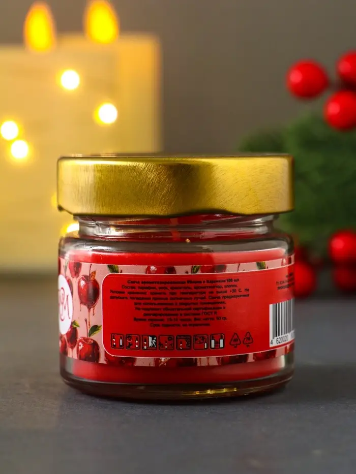 Свеча ароматическая в банке "Яблоки в карамели" 100 мл, 14 ч