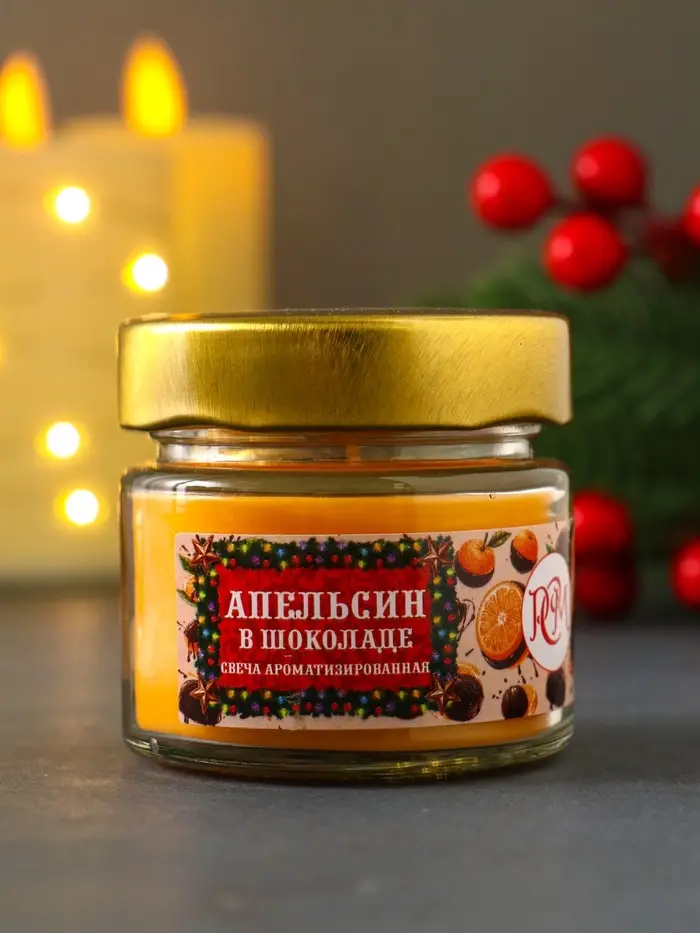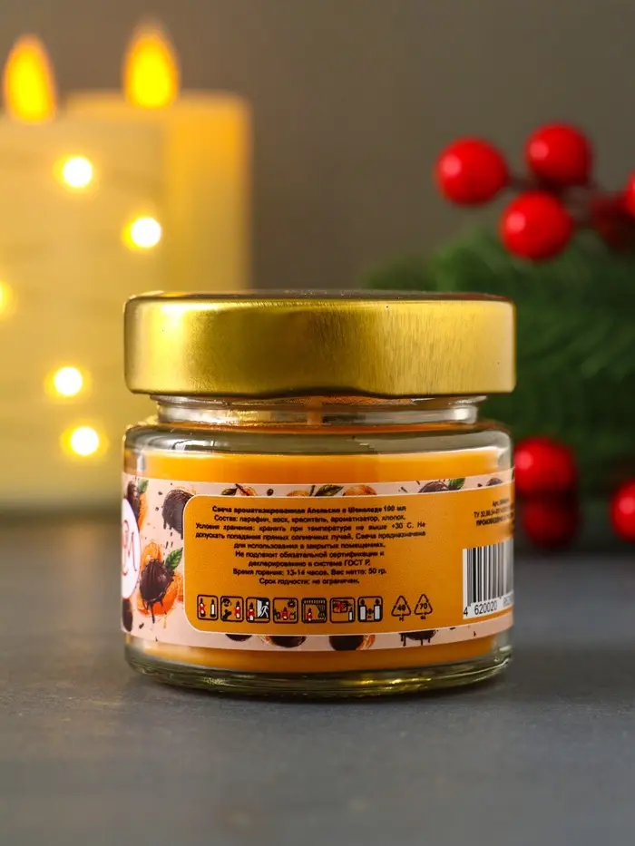 Свеча ароматическая в банке "Апельсин в шоколаде" 100 мл, 14 ч