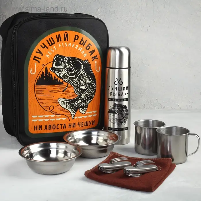 Набор посуды для пикника «Лучший рыбак»: термос 0.5 л, тарелка 300 мл, 2 шт., кружка 200 мл, 2 шт., мультитул 2 шт.