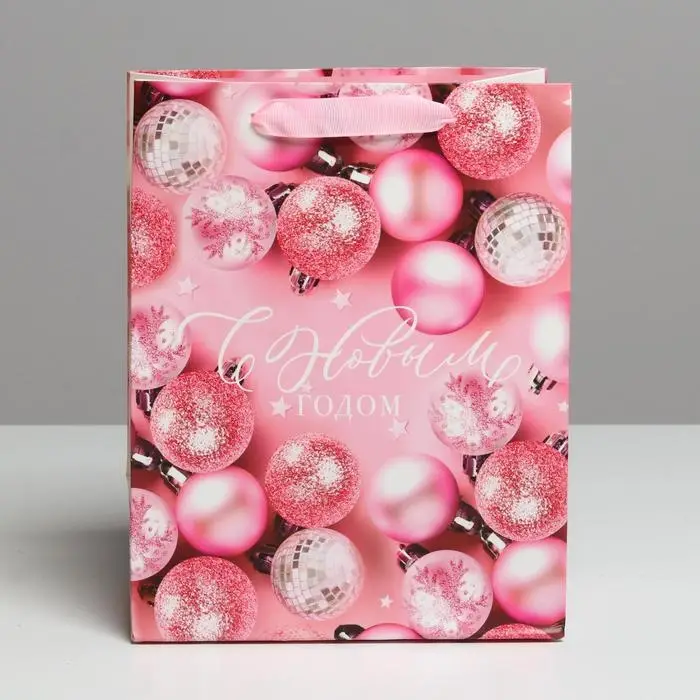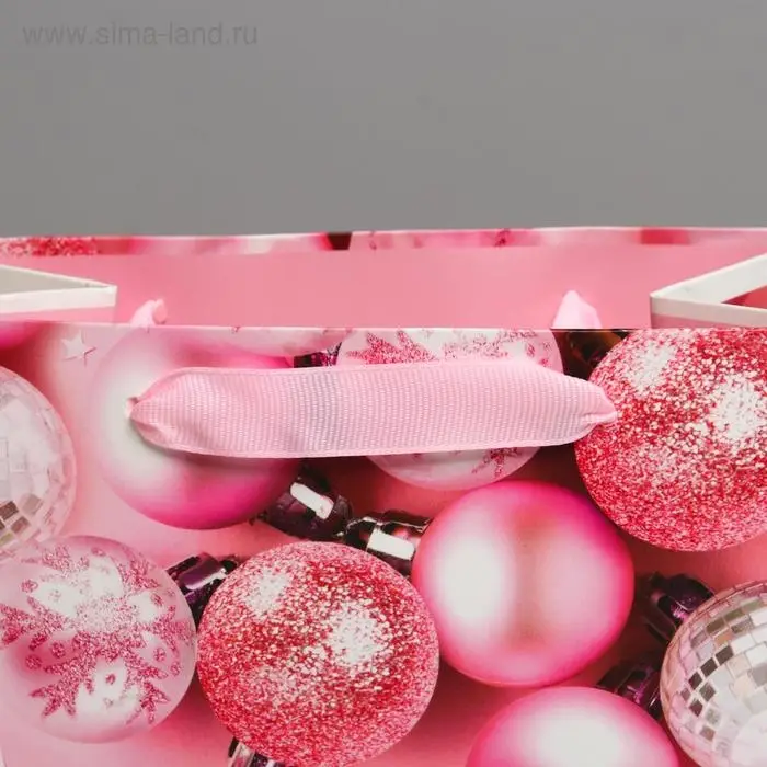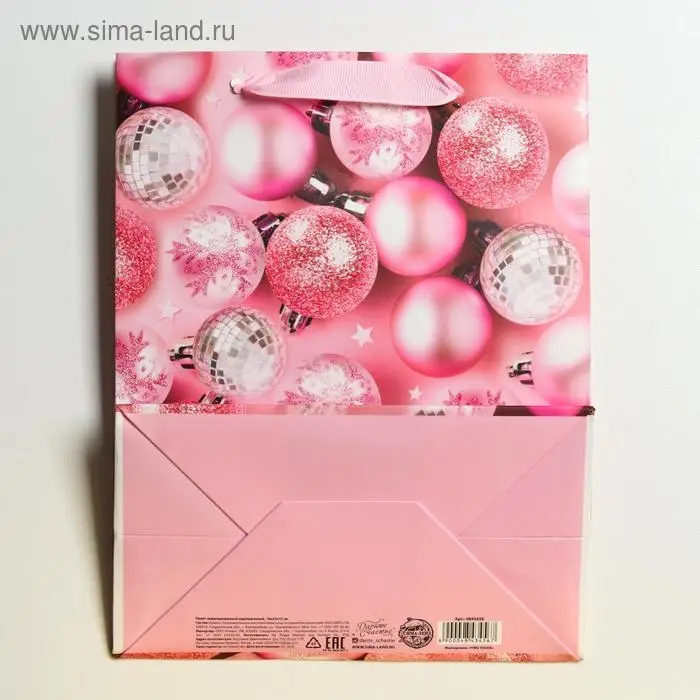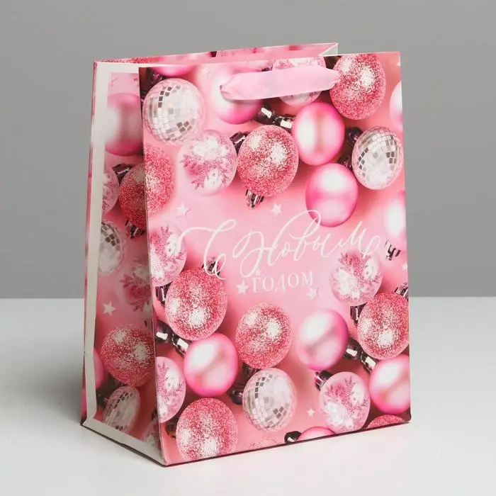 Пакет подарочный новогодний ламинированный «Розовые шарики», MS 18 х 23 х 10 см