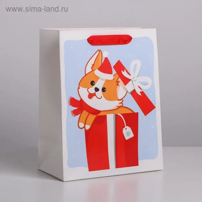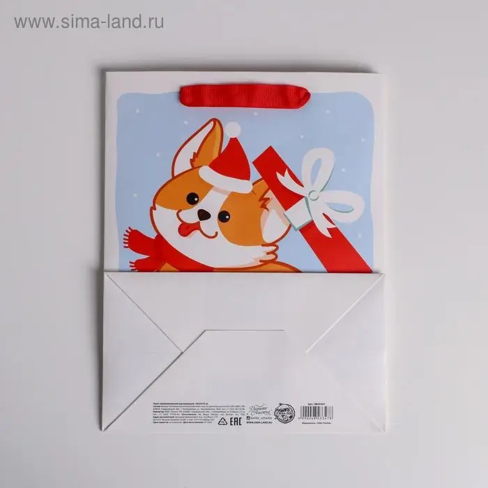 Пакет подарочный новогодний ламинированный «Пёсик», MS 18 х 23 х 10 см
