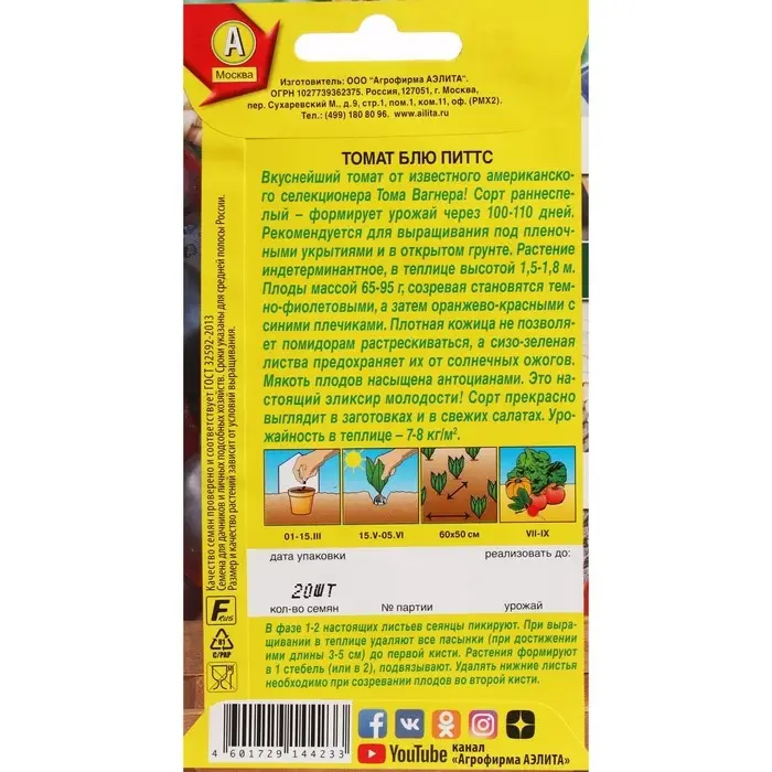 Семена Томат "Блю Питтс", ц/п, 20 шт