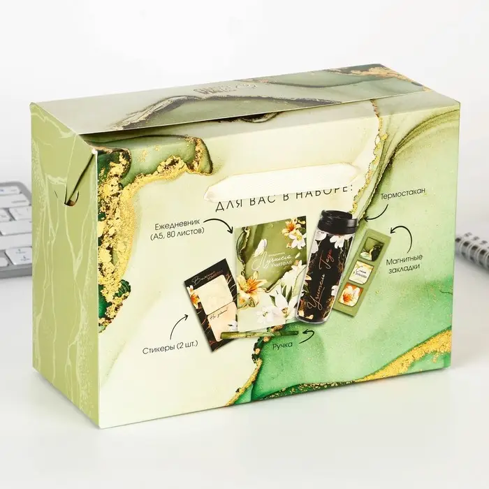 Подарочный набор «Лучшему учителю»: ежедневник А5, 80 листов, ручка, стикеры, термостакан