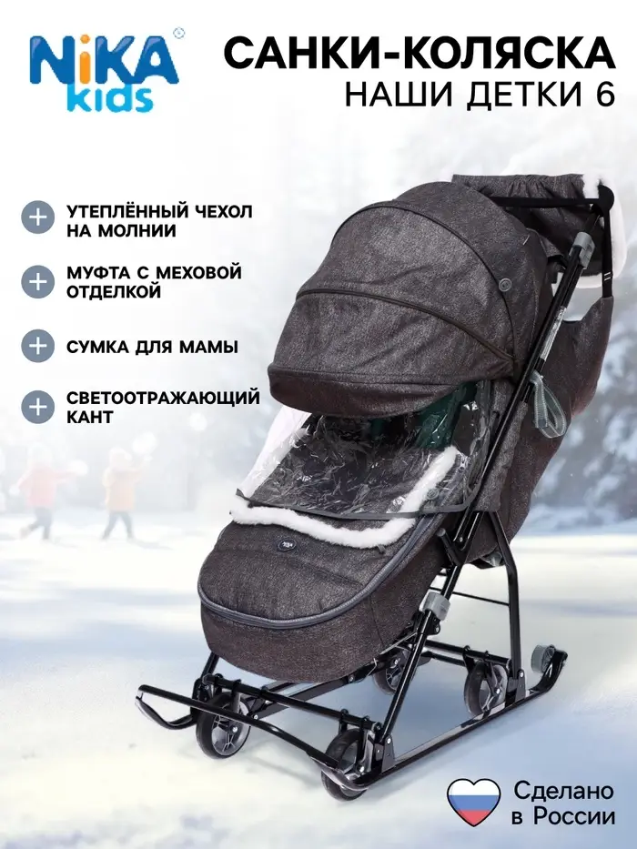 Тепло и комфорт на зимней прогулке! Санки-коляска «Наши детки 6» в сером цвете — это удобный транспорт для малыша с утеплёнными аксессуарами. Широкие полозья и колёсная база обеспечивают плавный ход по снегу и асфальту, а продуманная конструкция делает прогулки приятными в любую погоду.