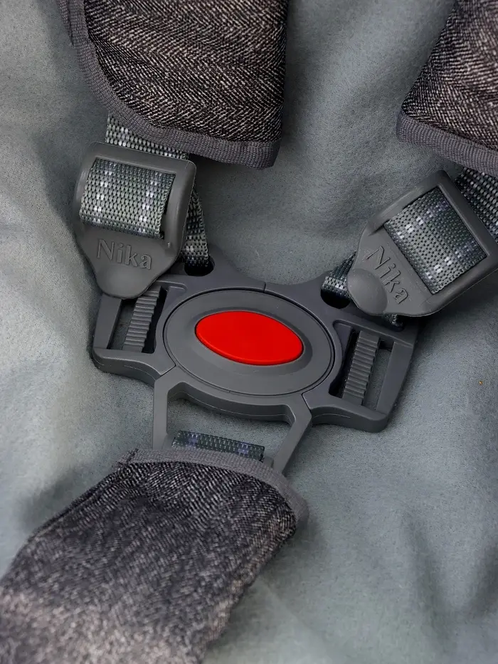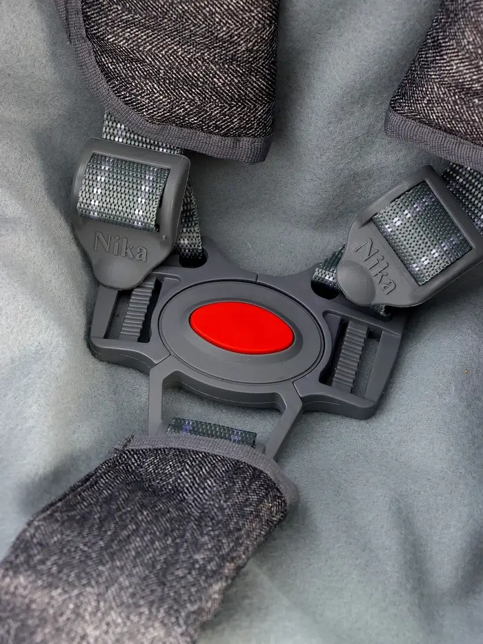 - Пятиточечный ремень надёжно фиксирует ребёнка, а съёмный мягкий бампер защищает от ударов.