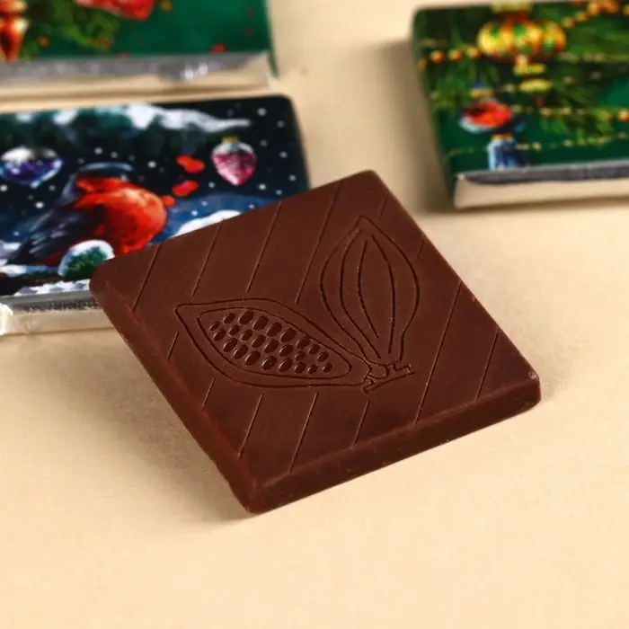 Состав: сахар, какао-масло, сухие молочные продукты, какао тёртое, какао-порошок, эмульгаторы (лецитин соевый – Е322, PGPR – Е476), ароматизатор пищевой «Ванилин».