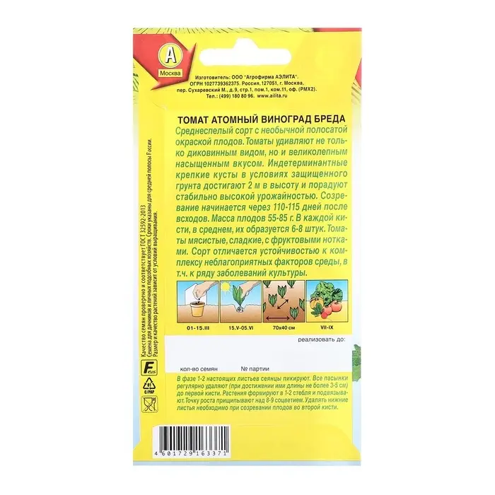 Семена Томат Атомный виноград Бреда Ср Зазеркалье Ц/П 20шт