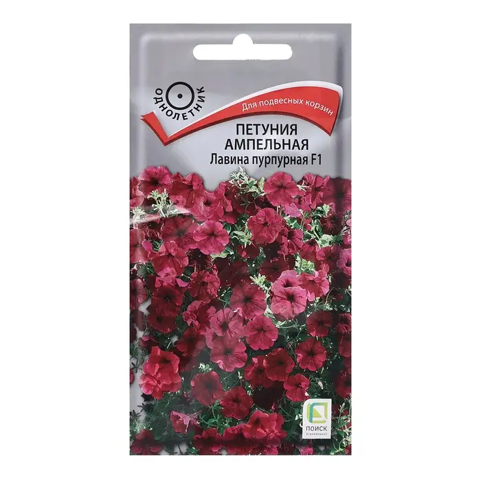 Новая модная группа ампельных петуний! Молодые растения прямостоячие, вырастая, побеги свешиваются и образуют лавину из цветов. Цветы эффектные, воронковидные, пурпурные. Цветет обильно с июня по октябрь. Великолепно подходит для подвесных корзин, балконных ящиков.Агротехника. Растение светолюбивое, засухоустойчивое, хорошо растет на любых питательных почвах.При выращивании рассады посевы проводят в марте. Семена слегка вдавливают в почву. Посадочную емкость накрывают стеклом и ставят в освещенное место. При температуре +18°C всходы появляются на 14-20 день. Сеянцы пикируют в фазе 2-х настоящих листьев. Рассаду высаживают после окончания весенних заморозков. Семена соответствуют требованиям международных стандартов и ГОСТу РФ 12260-81