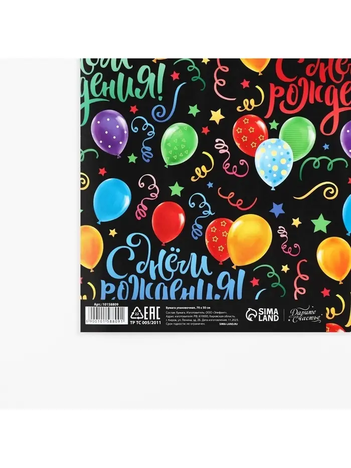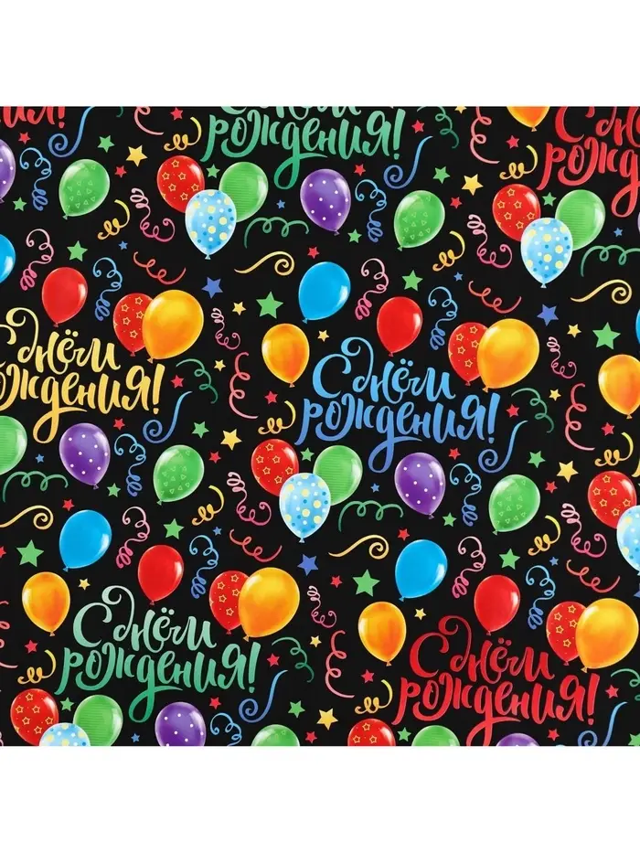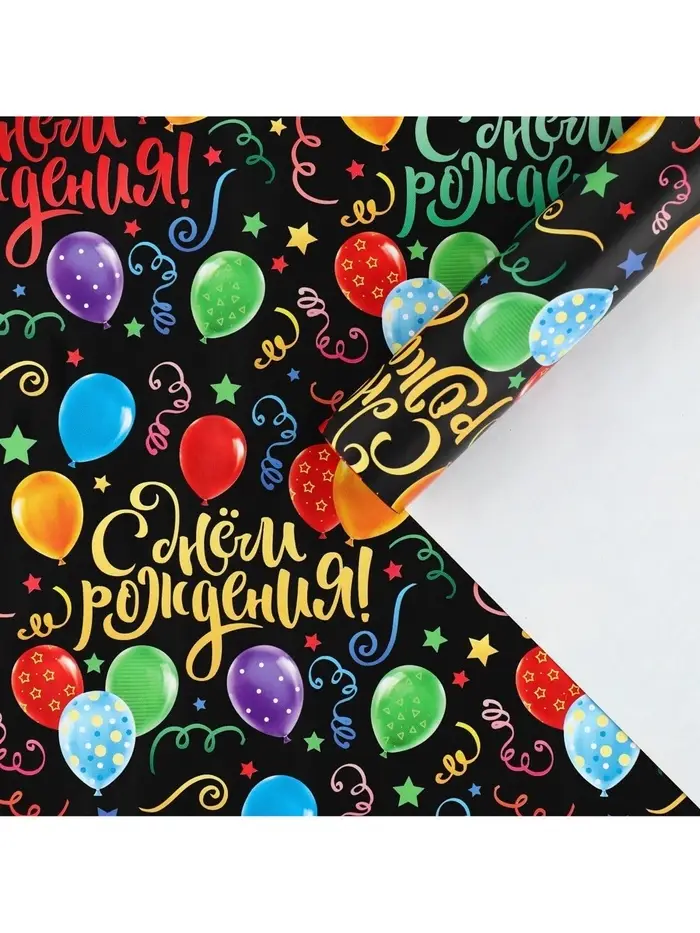 Бумага упаковочная глянцевая «С днём Рождения!», 50 х 70 см