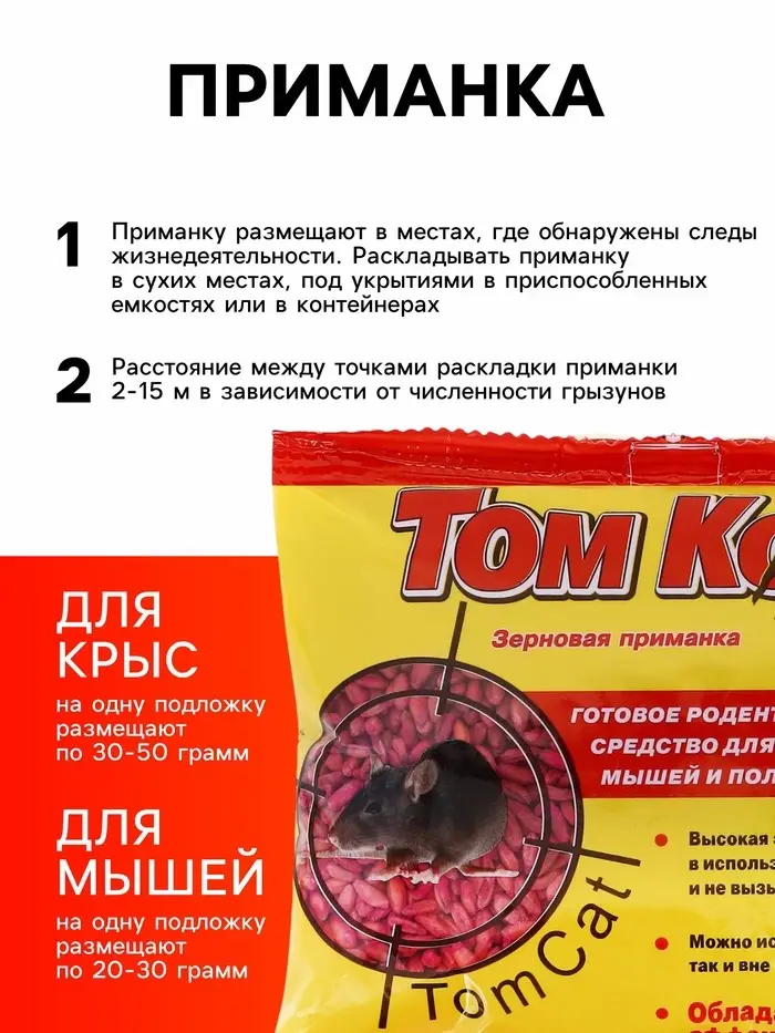 - Эффективно ликвидирует грызунов благодаря тщательно подобранным компонентам.
