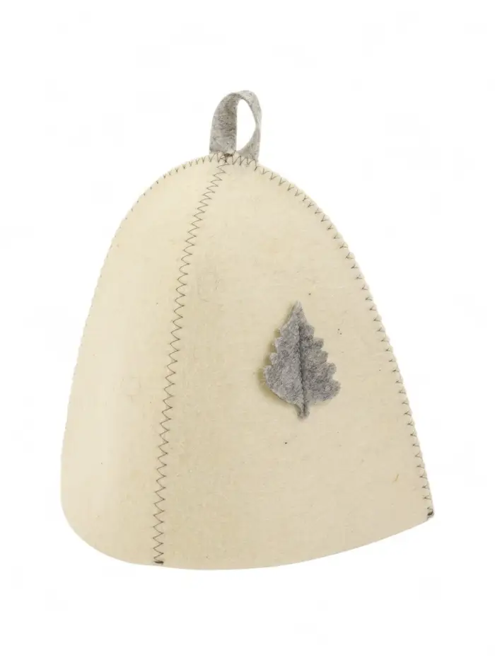 Шапка банная с аппликацией "Лист", войлок белый