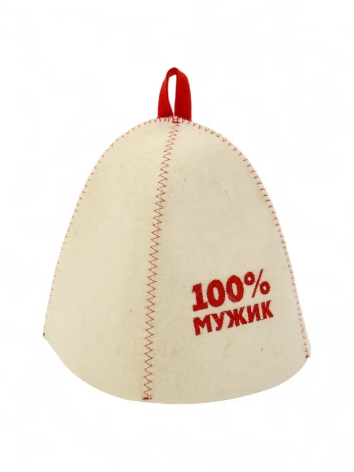 Шапка банная с вышивкой "100% мужик", войлок белый