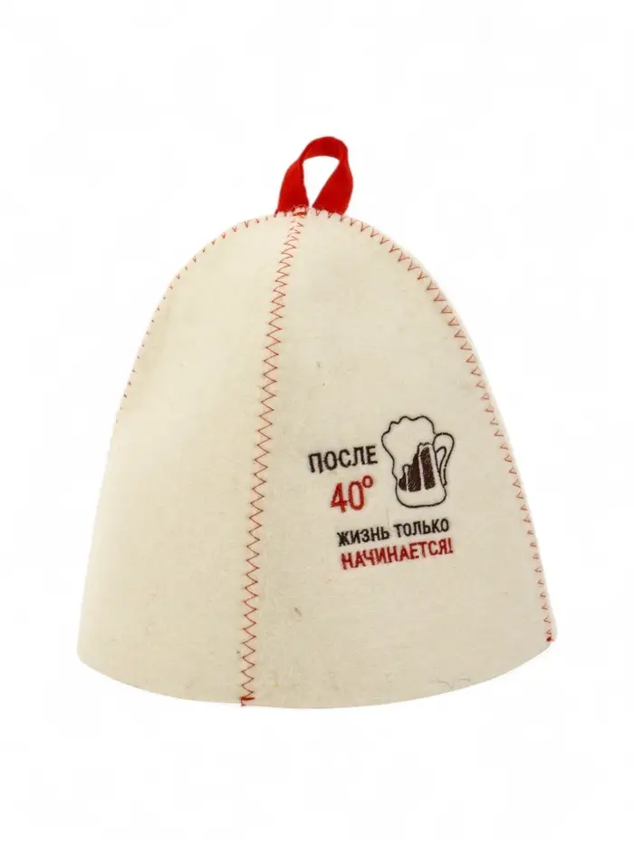 Шапка банная с вышивкой "После 40 ...", войлок белый