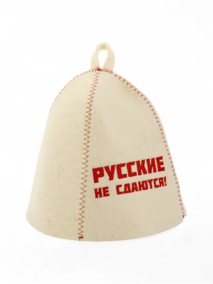 Шапка банная с вышивкой "Русские не сдаются!", войлок белый
