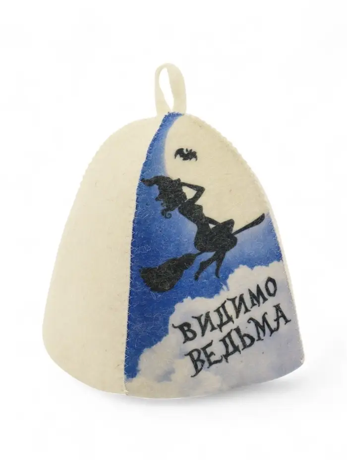 Шапка банная с принтом "Видимо ведьма", войлок белый