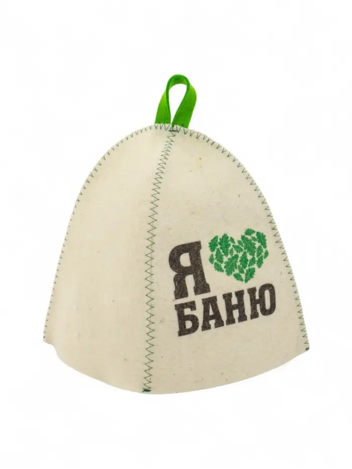 Шапка банная с принтом "Я люблю баню", войлок белый