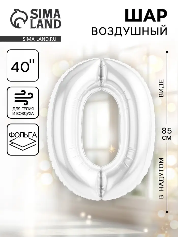 Воздушный шар фольгированный 40" «Цифра 0», белый