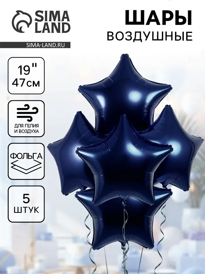Воздушные шары фольгированные 19" «Сапфир», 5 шт.