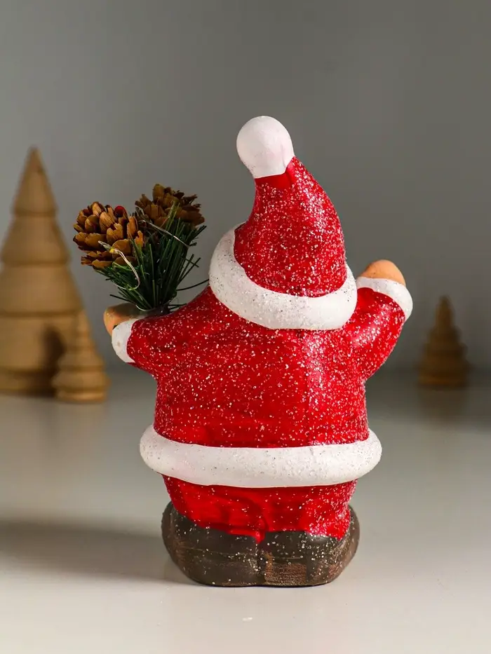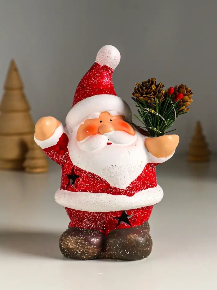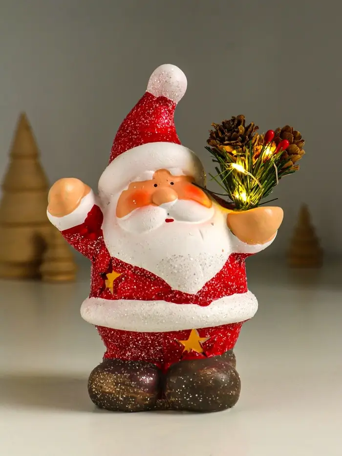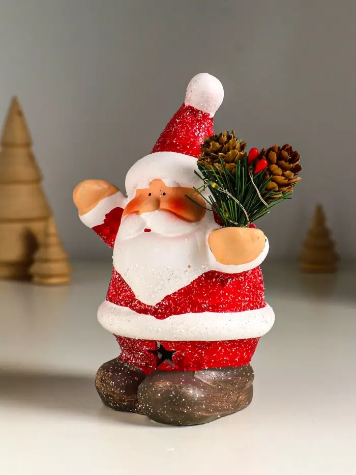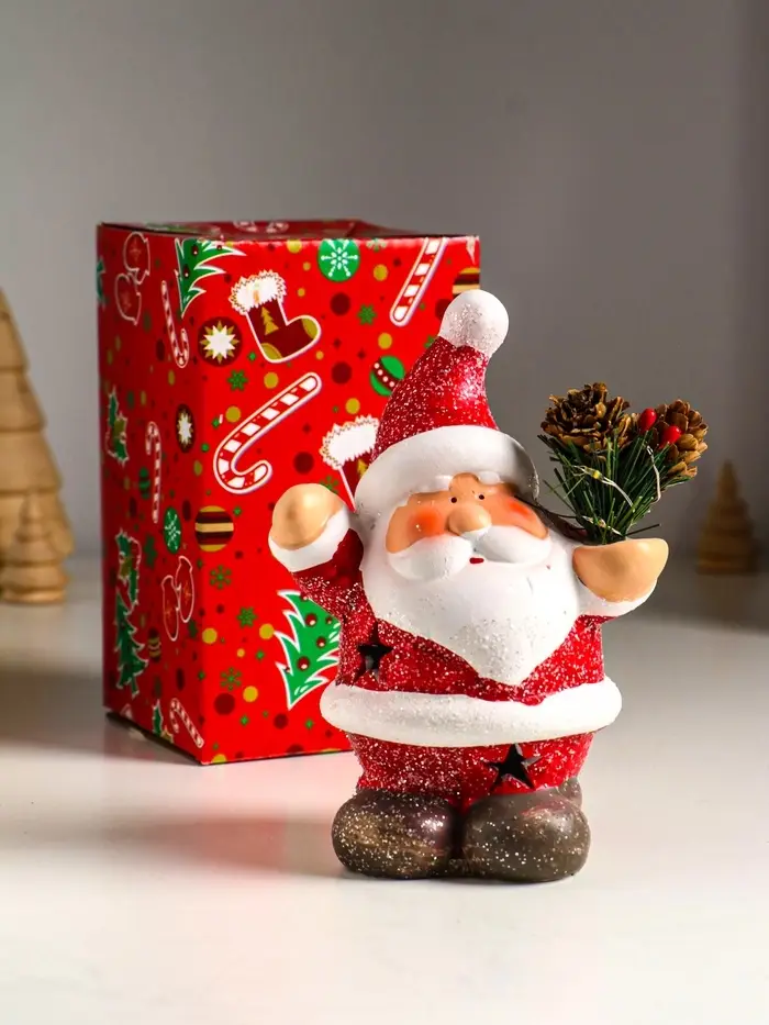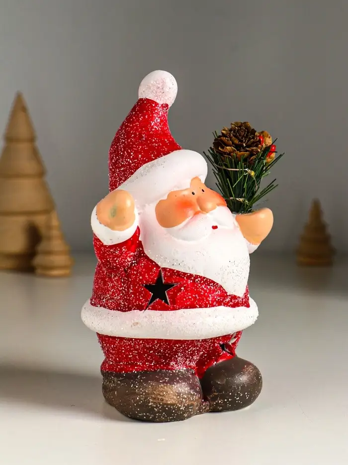 Сувенир керамика свет "Дед Мороз в красной шубке с еловой веточкой" 10х7,5х14,5 см