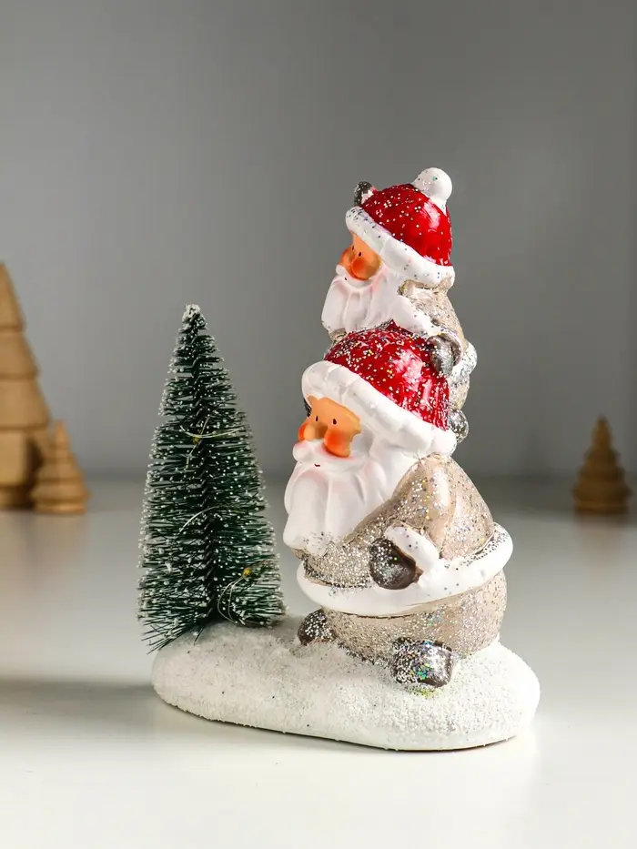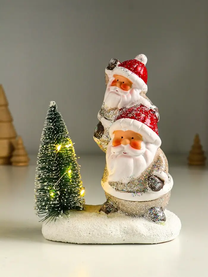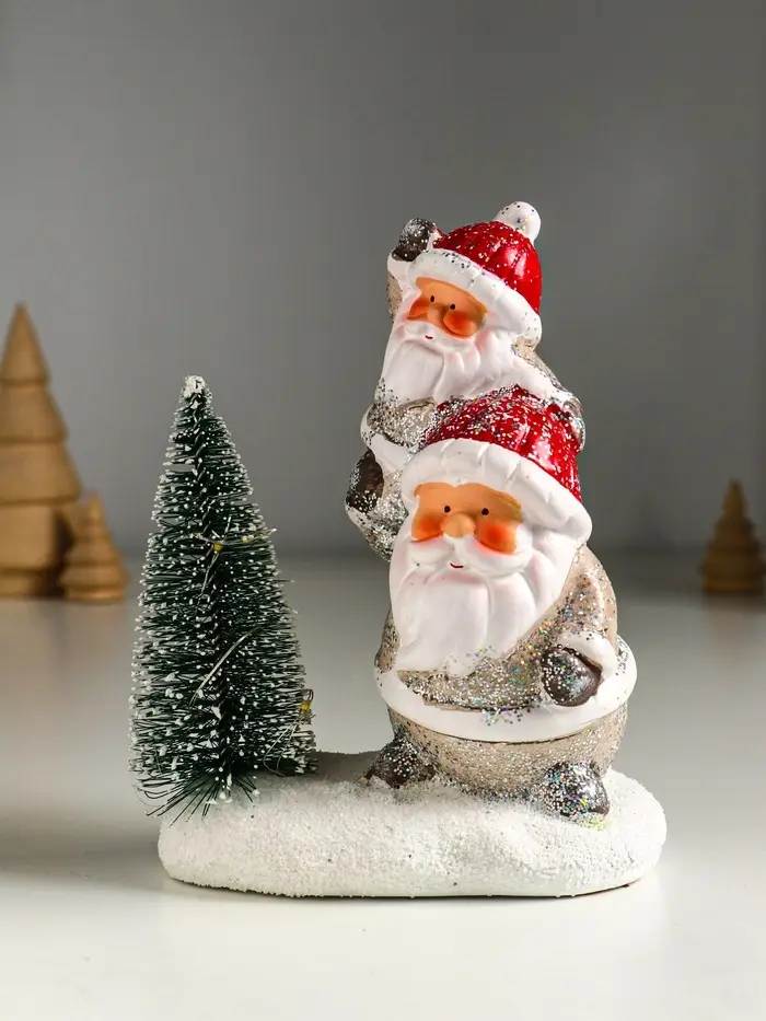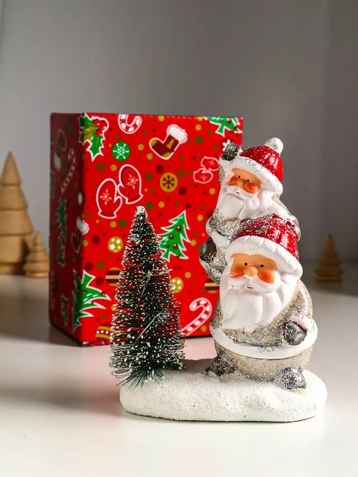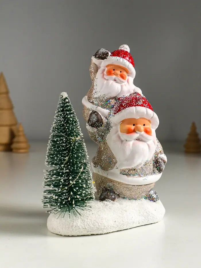 Сувенир керамика свет "Два Деда Мороза у ёлочки" 12х7х16 см