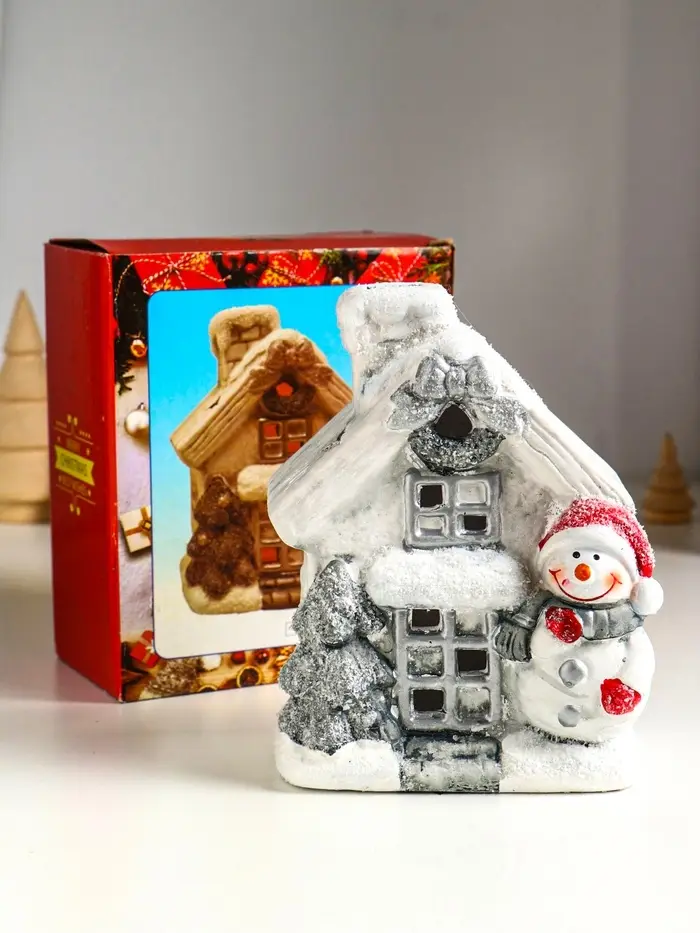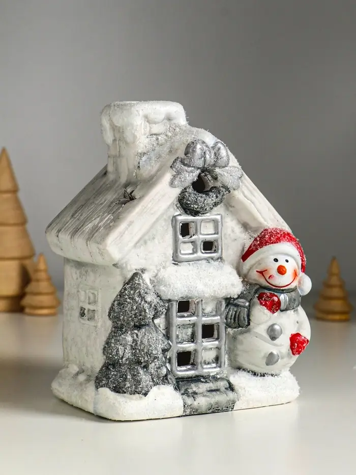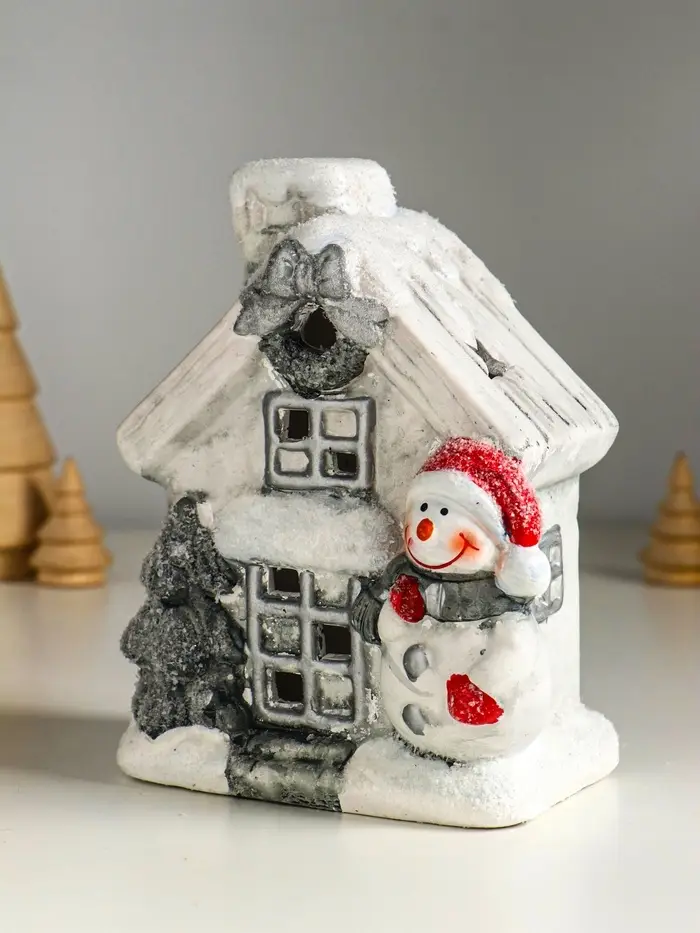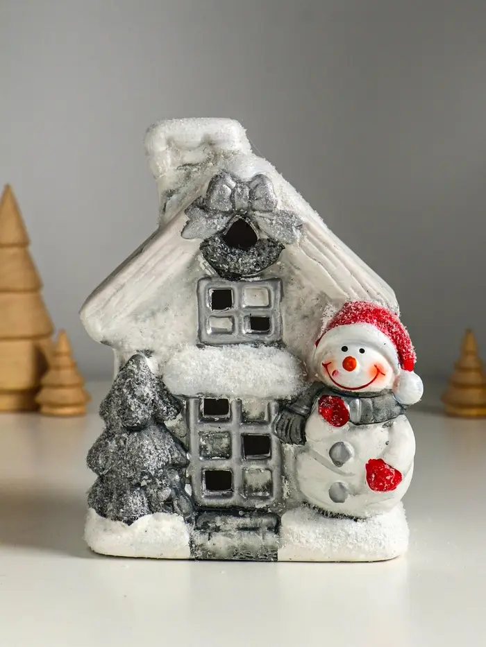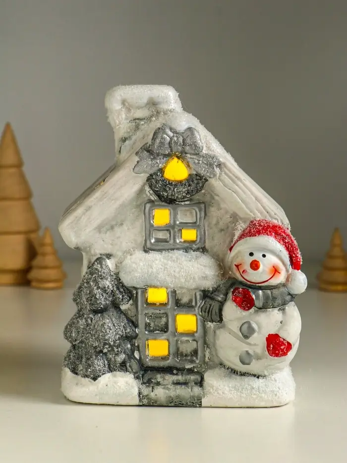 Сувенир керамика свет "Снеговичок у домика" 11,5х7,5х15,5 см