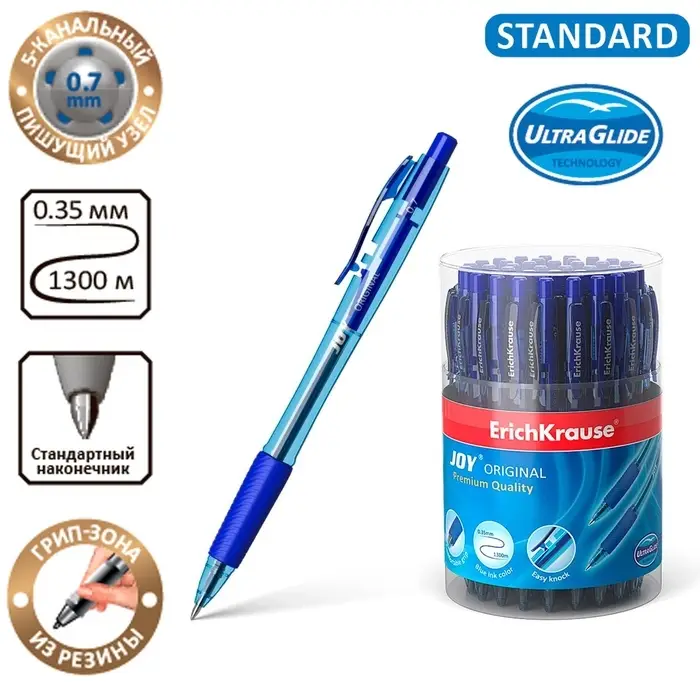 Ручка шариковая автомат ErichKrause JOY Original, комфортное письмо, синяя