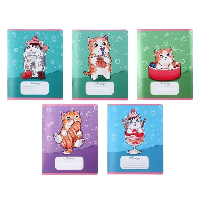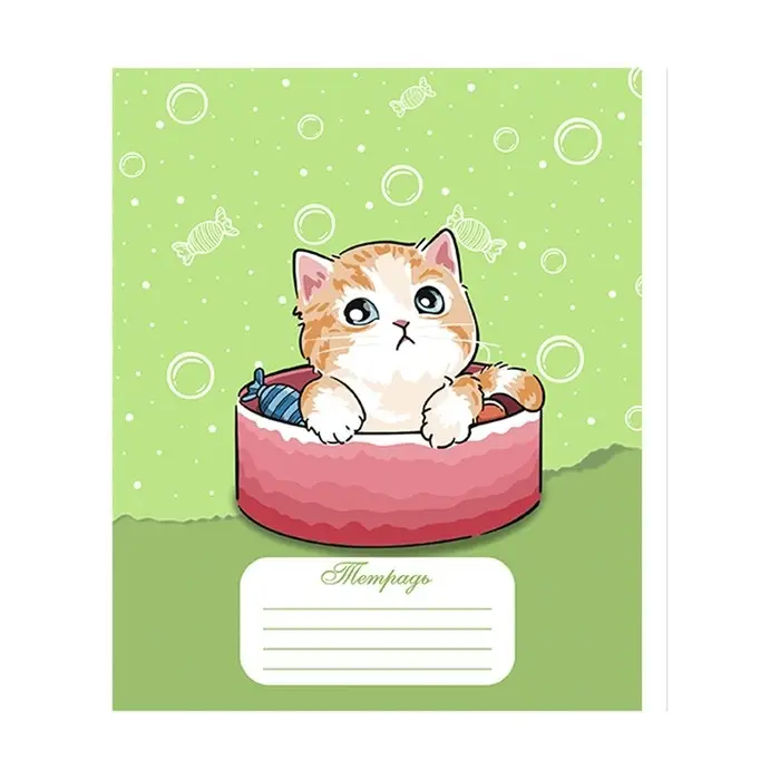 Тетрадь 18 листов в линию Calligrata "Котятки", обложка мелованная бумага, ВД-лак, блок №2 (серые листы) МИКС