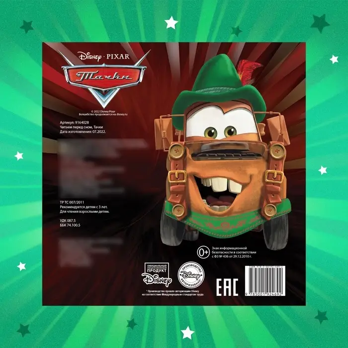 Книга с историями «Читаем перед сном. Тачки», 3 истории, 36 стр., 19 × 19 см, Дисней