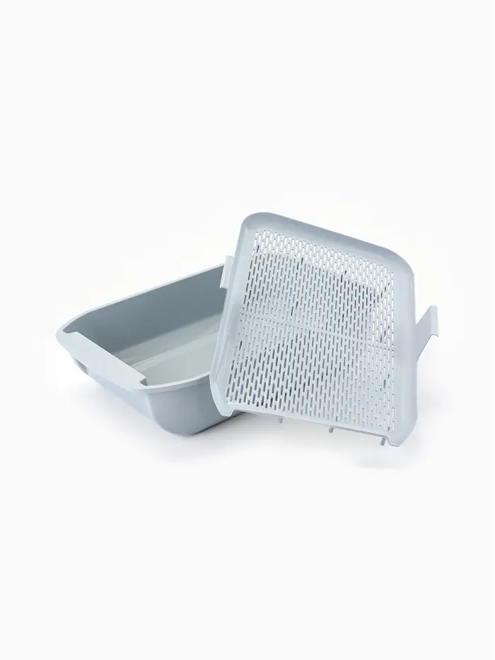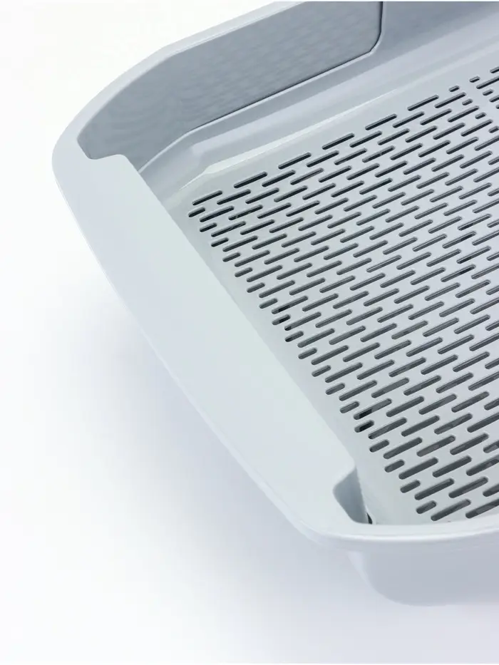 - Функциональная антипесочная сетка: Съемная решетка отделяет комкующийся наполнитель от отходов. Это упрощает ежедневную уборку — достаточно поднять сетку, чтобы удалить комки, экономя время и средства на наполнителе.