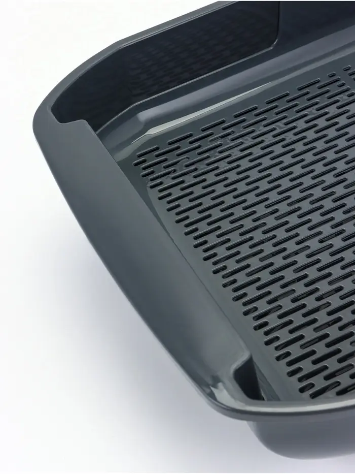 - Съемная сетка для простой уборки: Решетка эффективно разделяет отходы и чистый наполнитель. Ежедневное обслуживание занимает секунды — достаточно приподнять сетку для удаления комков.