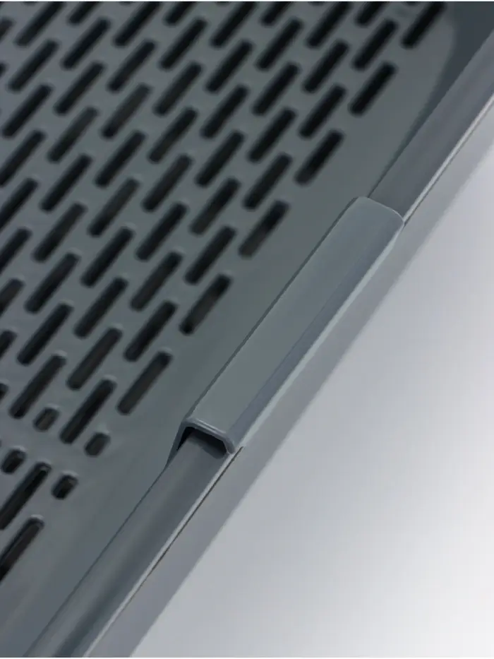 - Гигиеничность и долговечность: Материал не впитывает запахи, легко моется и не деформируется со временем. Нейтральный серый цвет гармонично вписывается в интерьер.