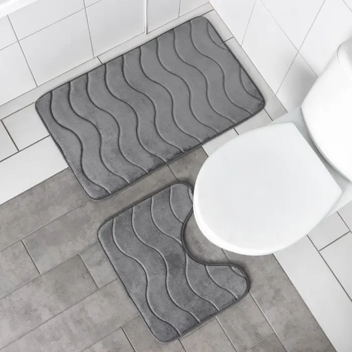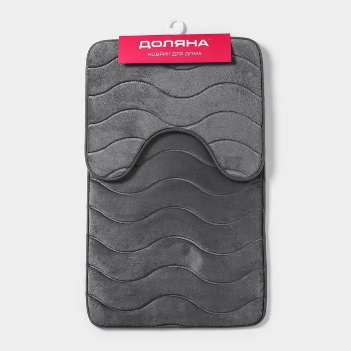 Коврики для ванной и туалета Доляна «Волна», 2 шт., 40×50 см, 50×80 см, серые