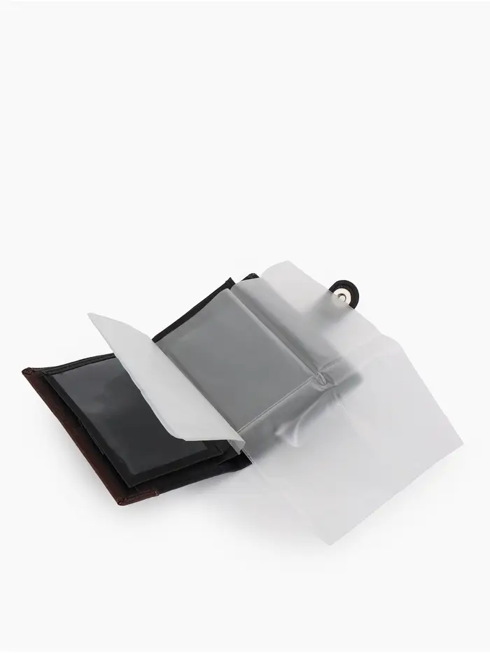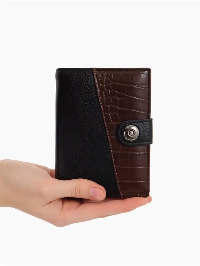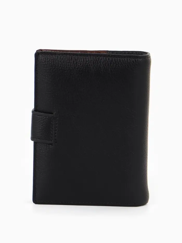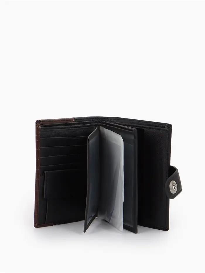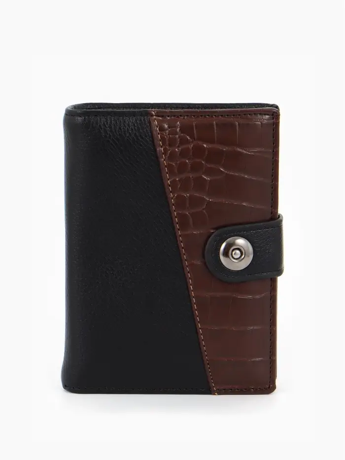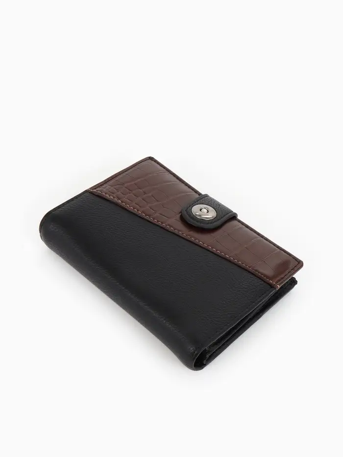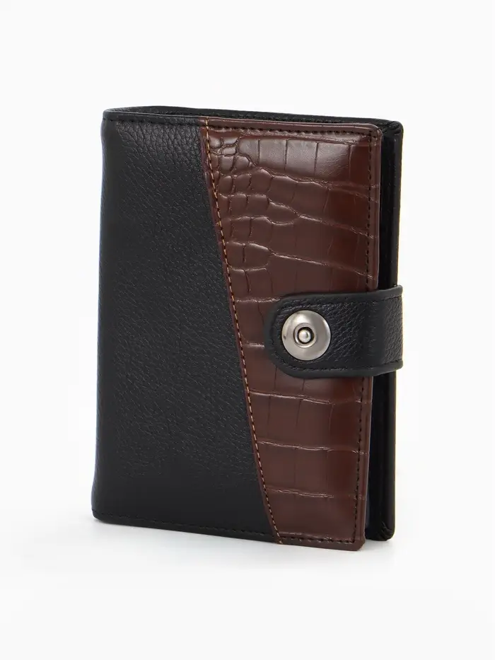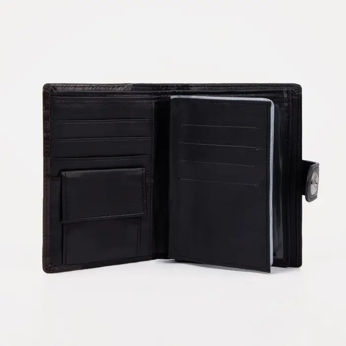 Портмоне мужское на кнопке, 3 в 1, для автодокументов и паспорта, 2 отдела, для карт, для монет, цвет чёрный/кофе