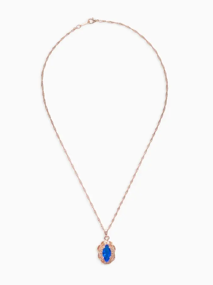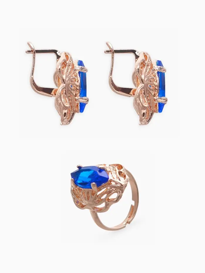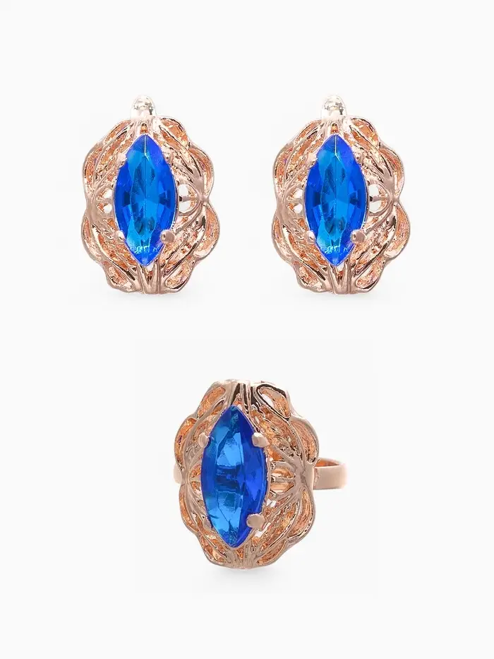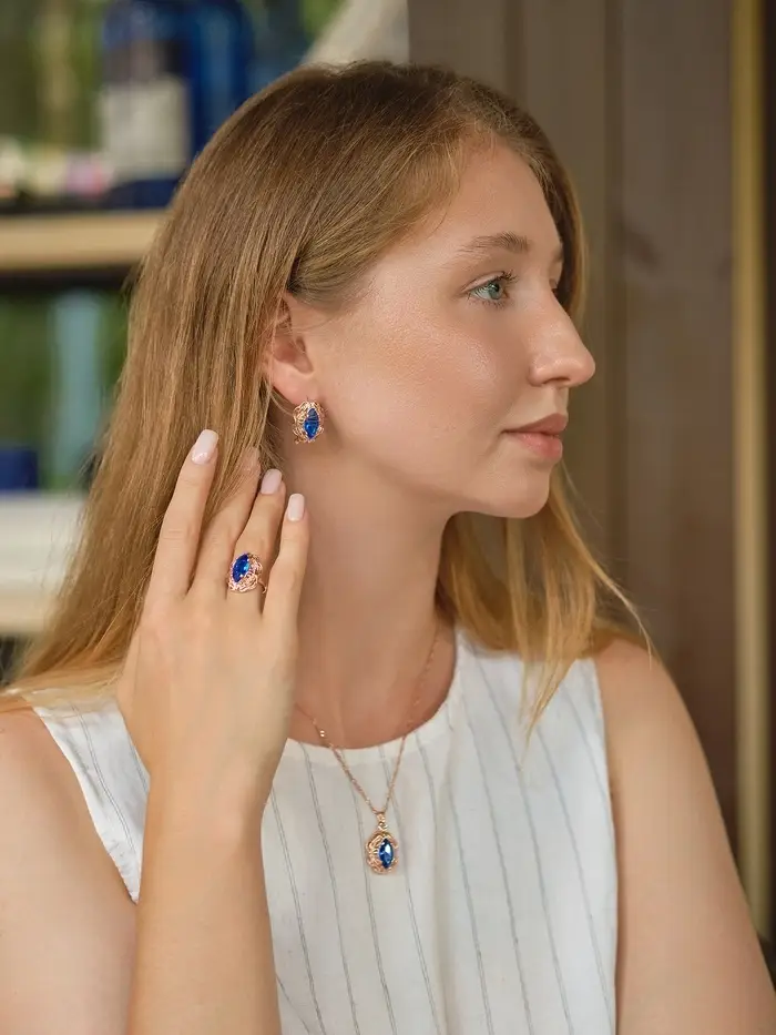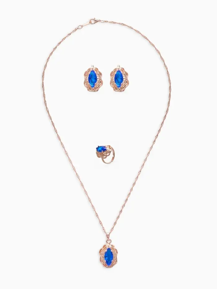 Гарнитур 3 предмета: серьги, кулон, кольцо безразмерное «Эдель», ажурный овал, син в золоте, 45 см