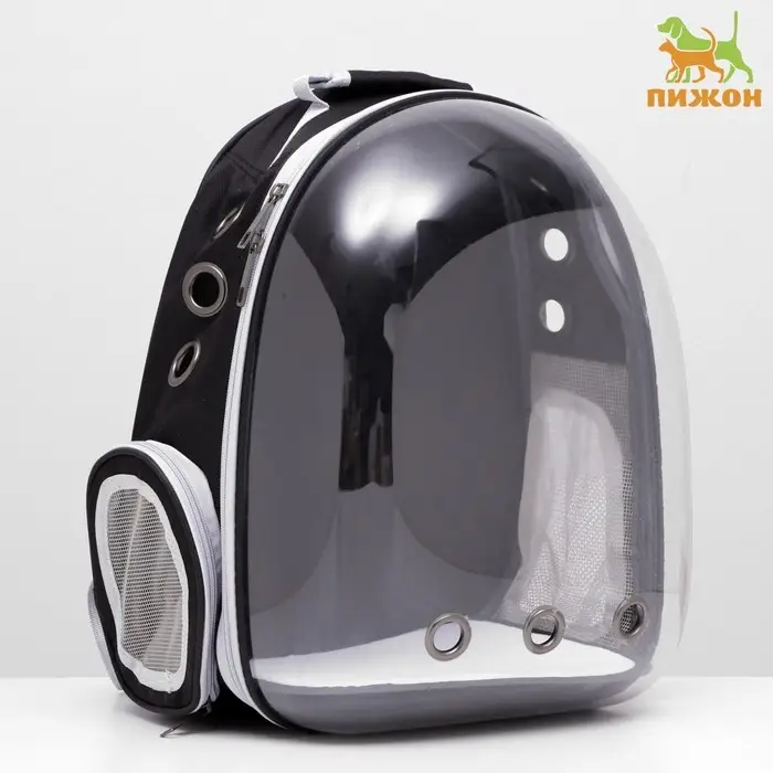 Рюкзак для переноски животных прозрачный, 31 х 28 х 42 см, чёрный