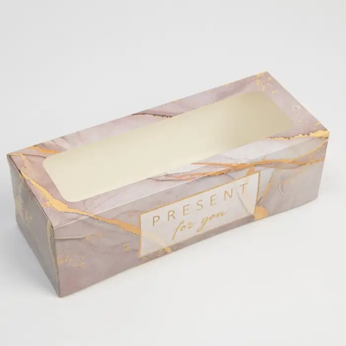 Кондитерская упаковка, коробка для кекса с окном, Present for you, 26 х 10 х 8 см