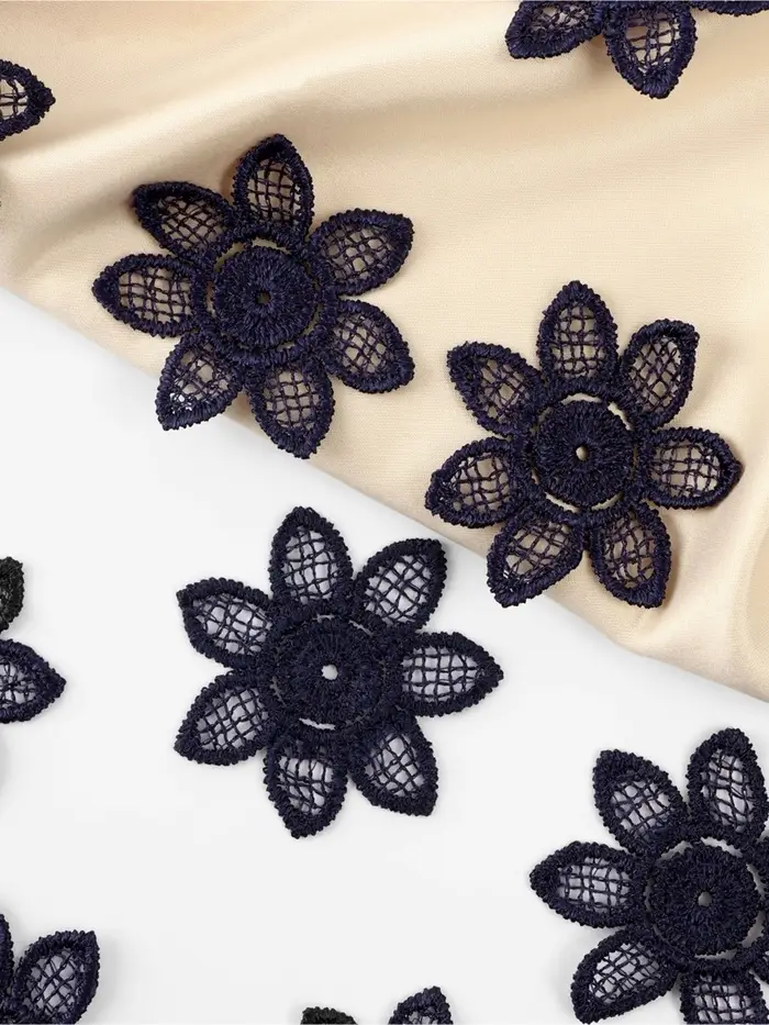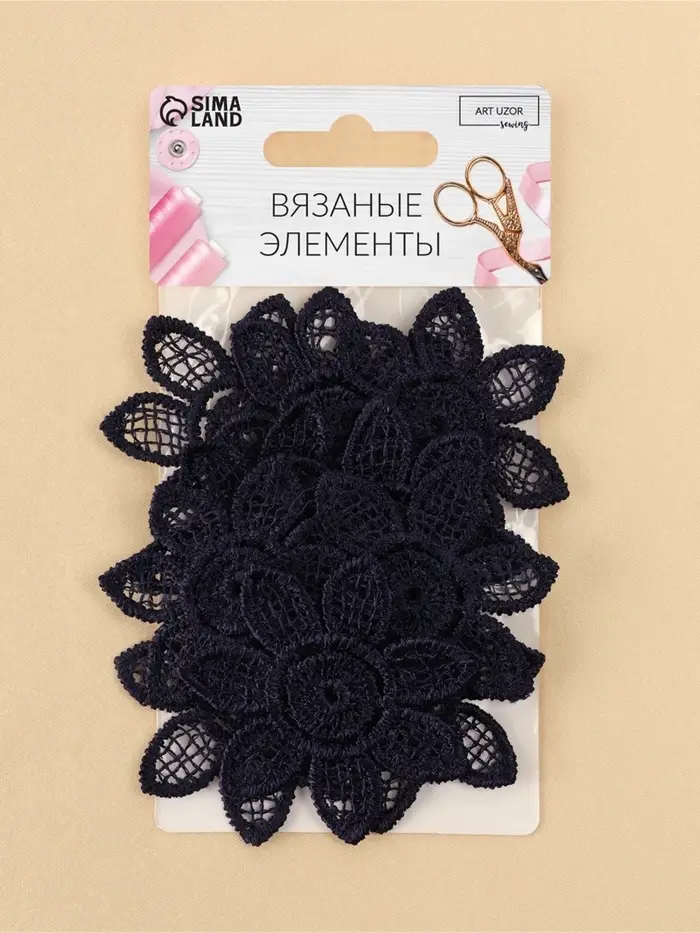 Добавьте нотку летнего настроения в свои творческие проекты с этими изящными кружевными украшениями. Десять ажурных цветочков диаметром 4,5 см насыщенного синего цвета станут стильным дополнением для одежды, аксессуаров или предметов домашнего декора.
