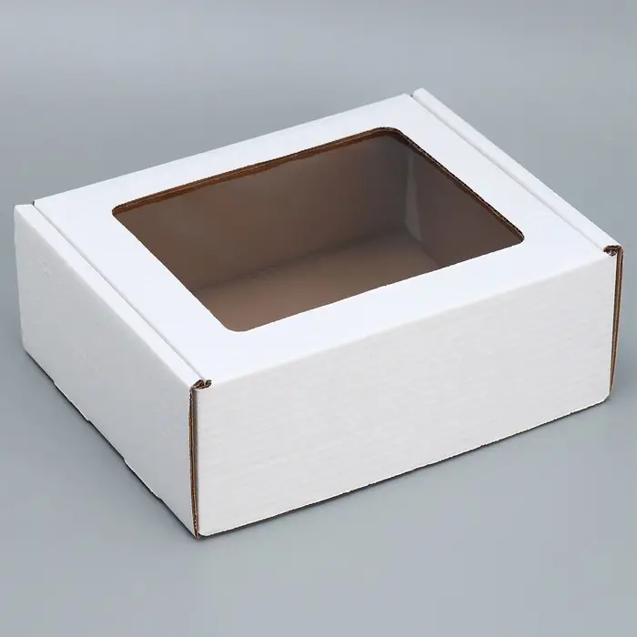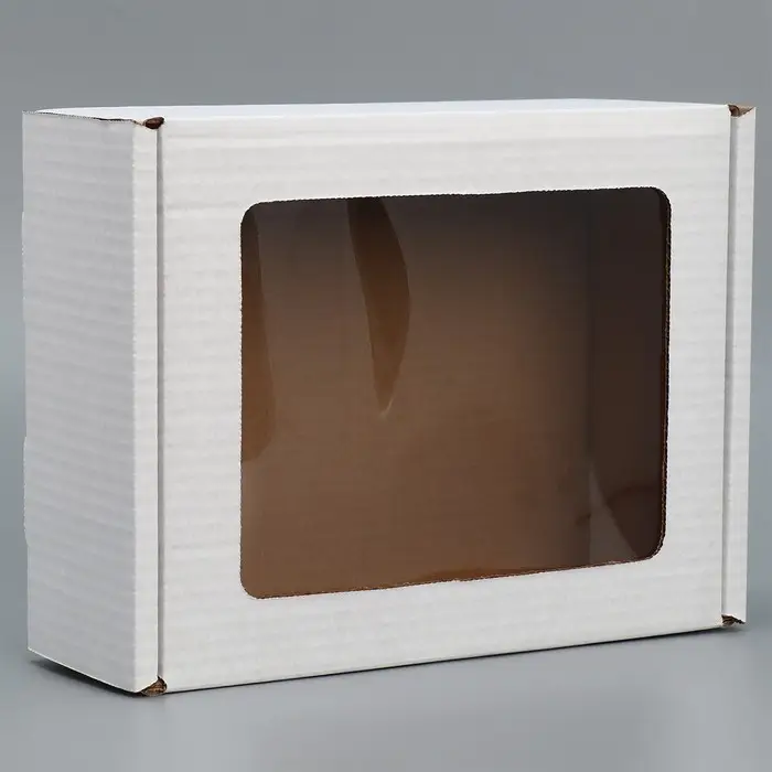 Коробка подарочная сборная с окном белая, упаковка, 27 х 10 х 21 см