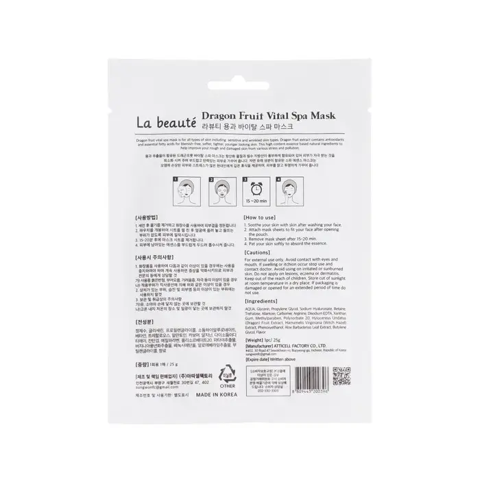 Тканевая маска La Beute с экстрактом драгонфрута, 25 мл