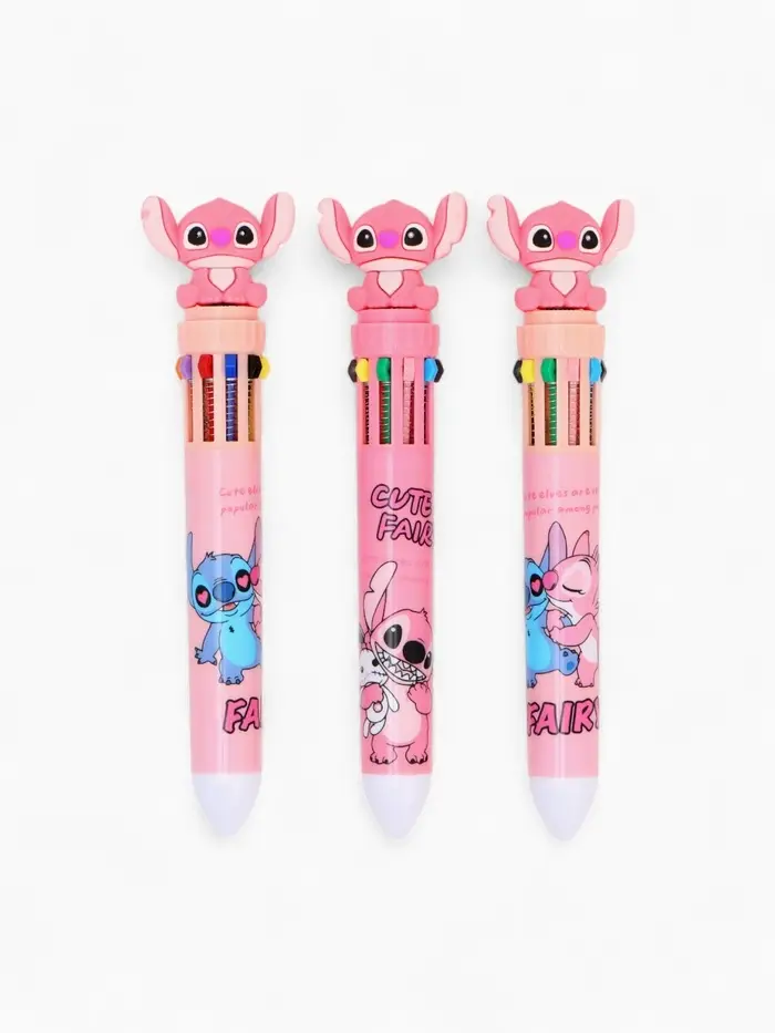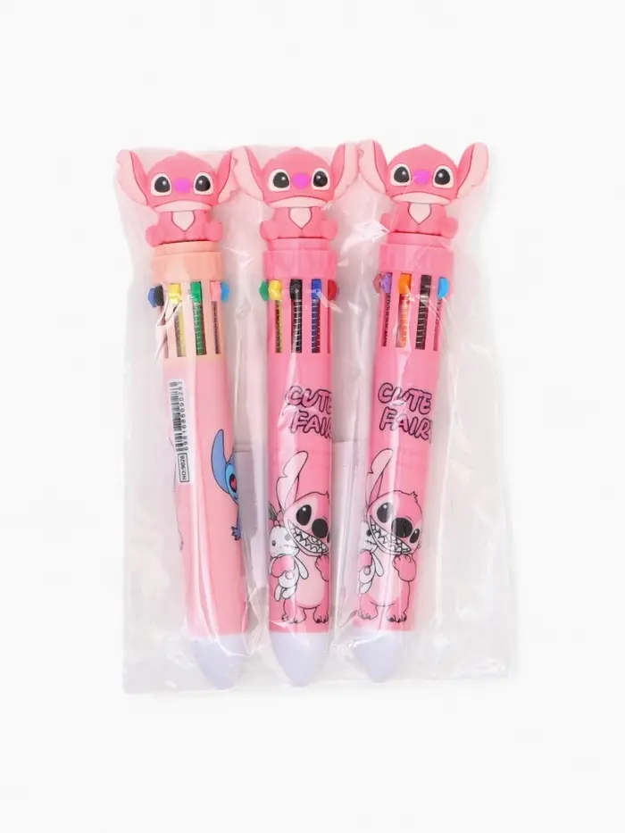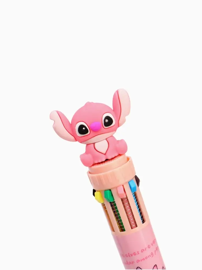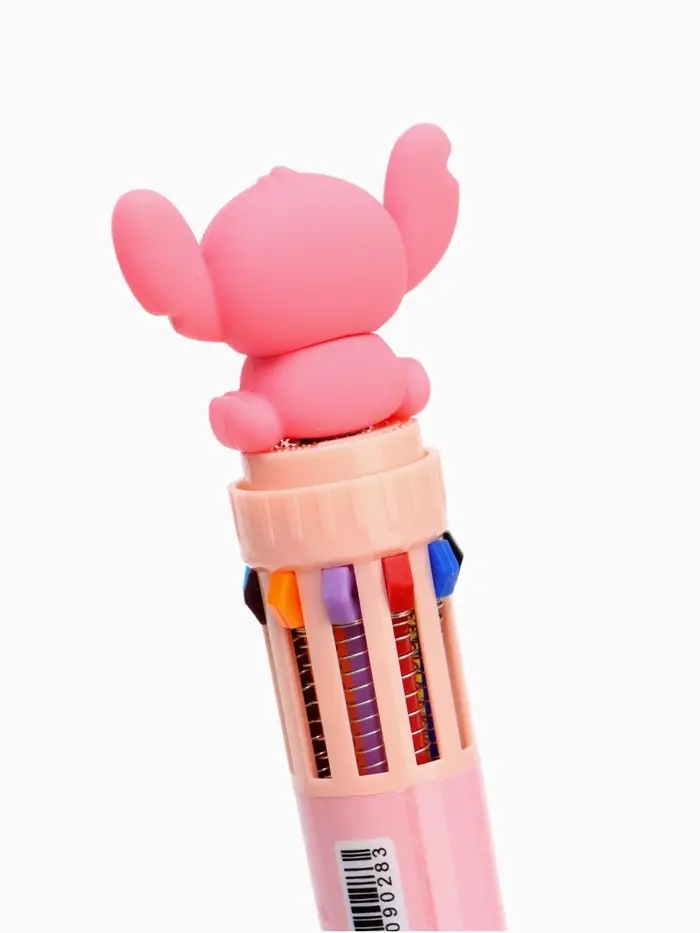 Ручка многоцветная 10 цветов Стич, розовый