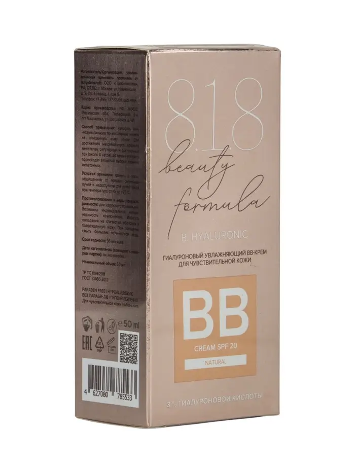 Крем-BB для чувствительной кожи гиалуроновый 818 beauty formula увлажняющий, 50 мл