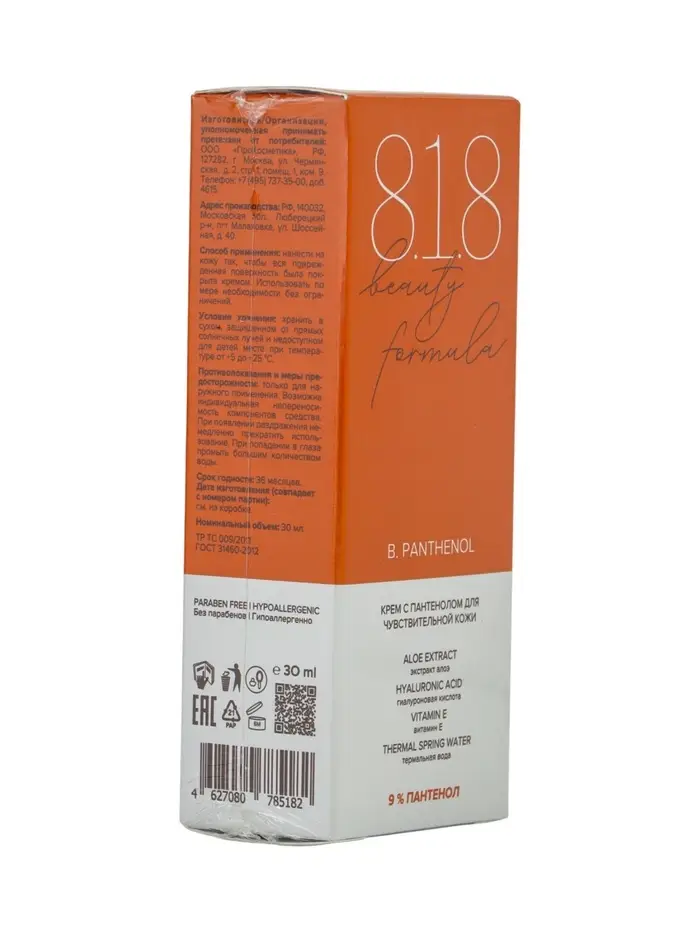 Крем для чувствительной кожи 818 beauty formula с пантенолом 9%, 30 мл
