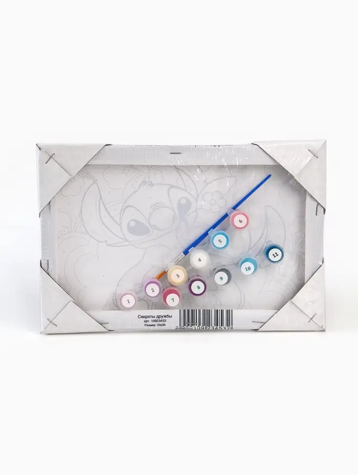 На холст нанесена схема, где пронумерован каждый сектор. Номер — цвет, написанный на баночке с краской. Нужно только раскрасить каждый сектор в соответствующий цвет.
