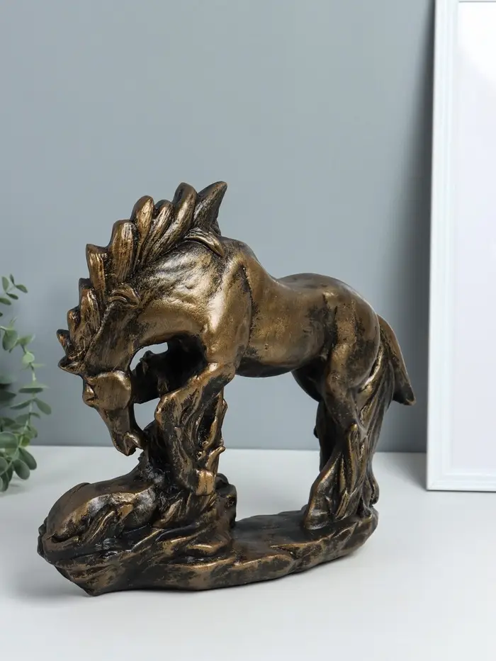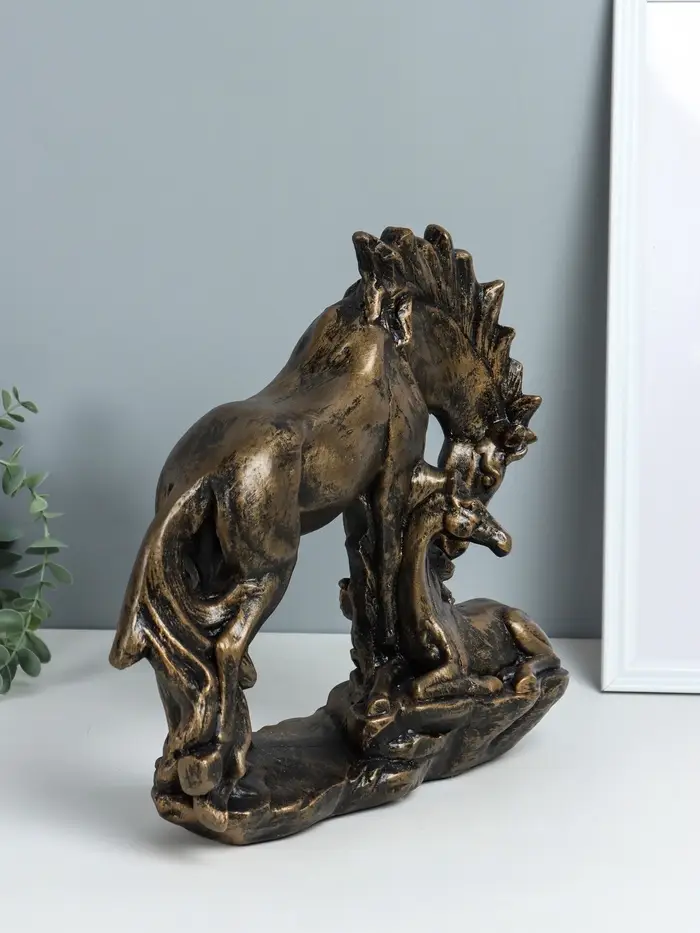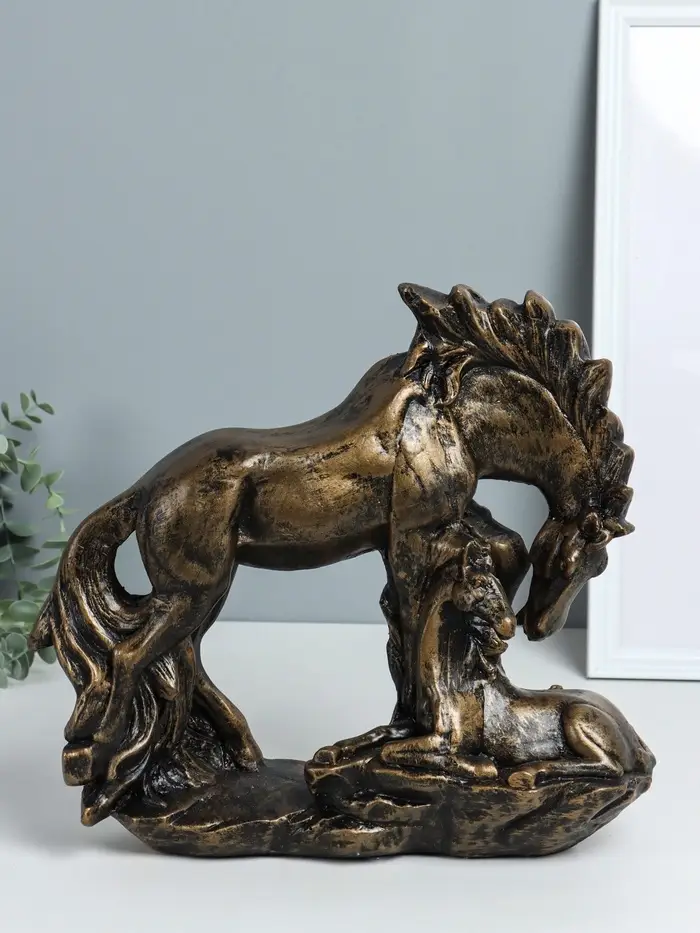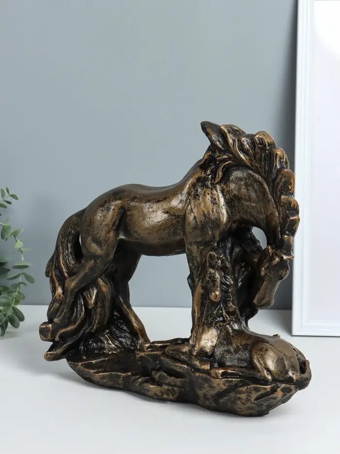 Фигура "Лошадь с жеребёнком" 30х30х12 см, чёрное золото